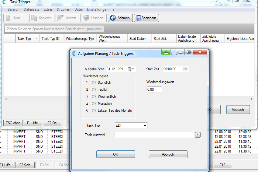 Über “Einstellungen\Standardvorgaben EDI-Tasks“ können die Task erstellt werden.
